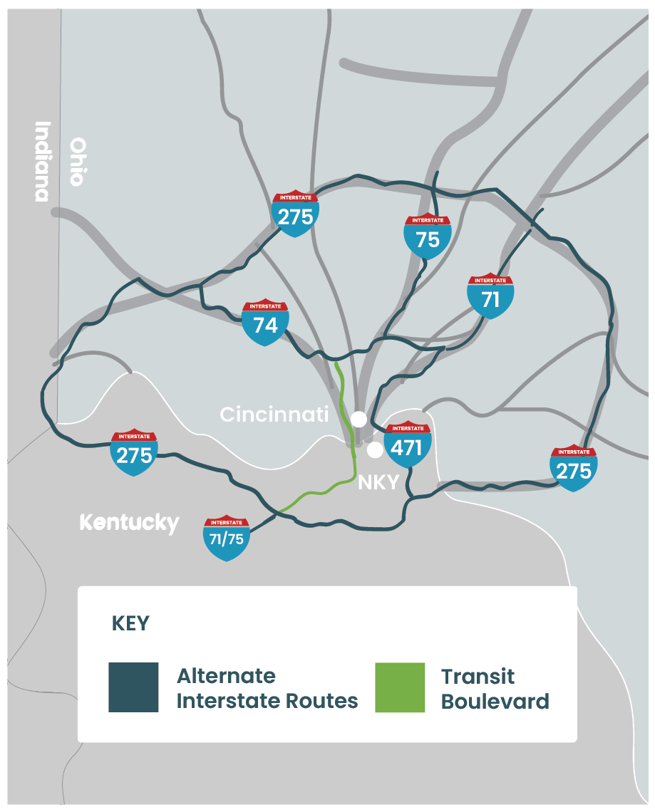 The "Brent Spence Corridor," an 8-mile stretch of Interstate running through our neighborhoods.